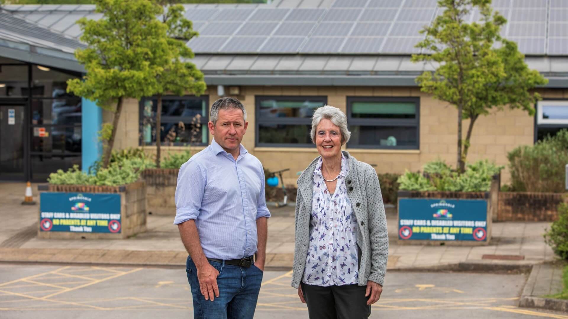 Andy Heald, Director of Innovation at Energise Barnsley, with micro-investor Margaret Andrew at Springvale School, which has opted to installed solar power units on its roof with the help of Energise Barnsley. The organisation is bringing clean power and lower bills to South Yorkshire, with older people among those enjoying the benefits.